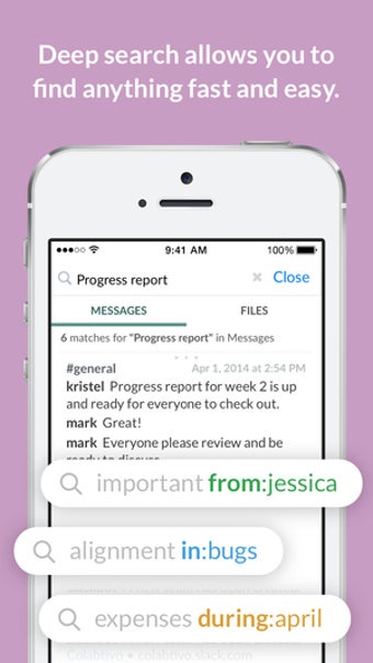 Slack için büyük bir artı nokta, çok sezgisel olması ve genel mesajlaşma programlarında kullanılan sistemleri temel alarak, bazı şeyleri basitleştirerek aramaya harcanan zamanı azaltmasıdır. düğmeler için. Bu, ekibi onu kullanmak için eğitmek için kaybedilen zamanı azaltmalıdır. Programın çok yumuşak, temiz bir arayüzü ve modern tarzı vardır. Ayrıca entegre edebilirsiniz güçlü> pencere değiştirmeyi azaltmak için Twitter Google Drive ve daha fazlası gibi diğer yazılımlar. Bunların tümü, mesajlarınızla birlikte arşivinizde aranabilir. Yazılım dosyaların içinde bile dizin oluşturur, bu nedenle aramalarınız PDF gibi şeylerin içeriğini içerir. Bu yazılımın bir başka büyük yararı da, mobil cihazlarınızla kolayca senkronize edilmesi, böylece her taban kapsanır ve hatta değişiklikleri size bildirecek şekilde kurulabilir. Son olarak, bu uygulamaya giren düşünceyi gösteren üst yönetim için özel kanallar gibi küçük dokunuşlara dikkat edin.